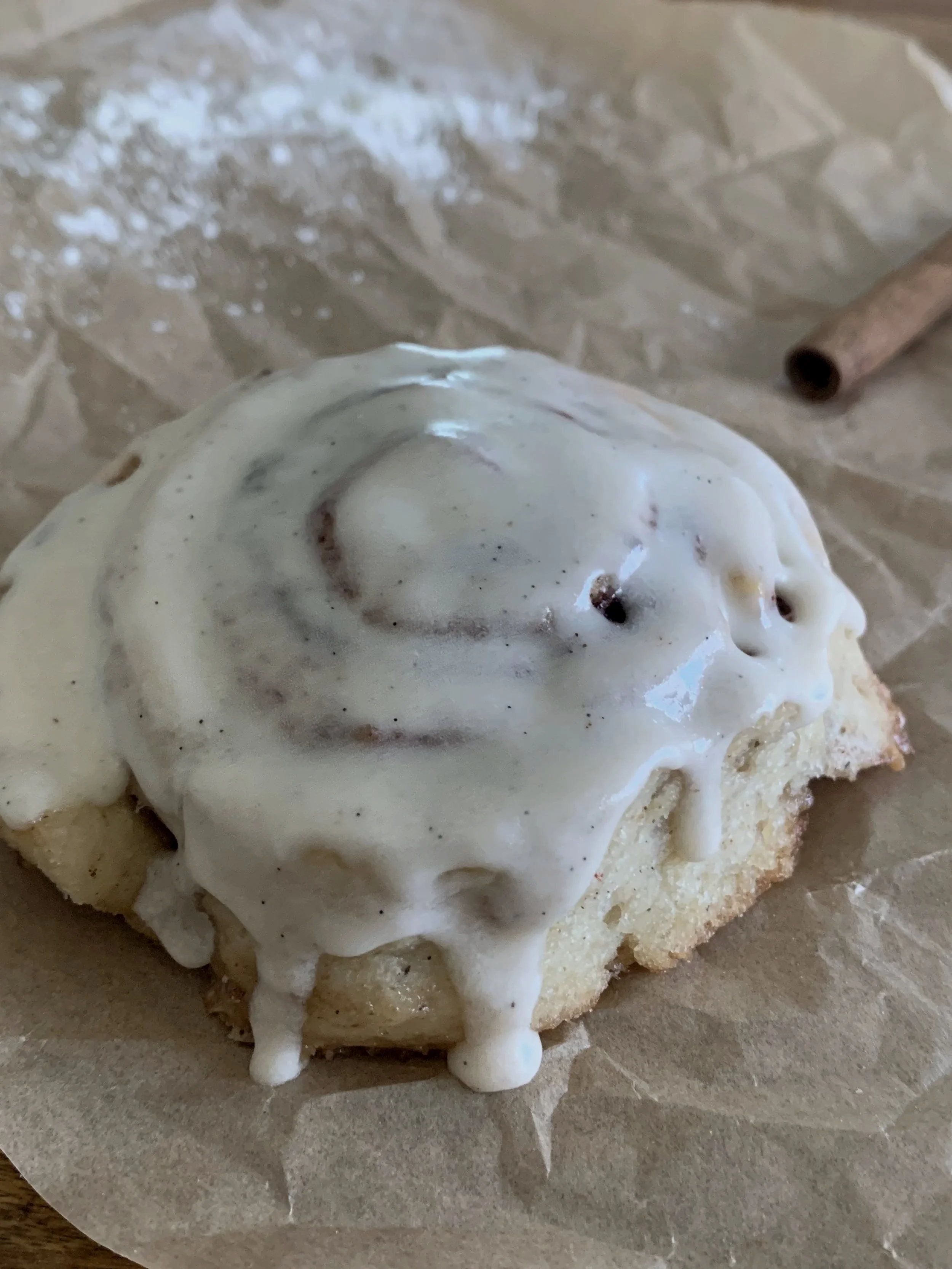 A pillowy, spiral- swirled roll with a gentle, cozy sweetness.